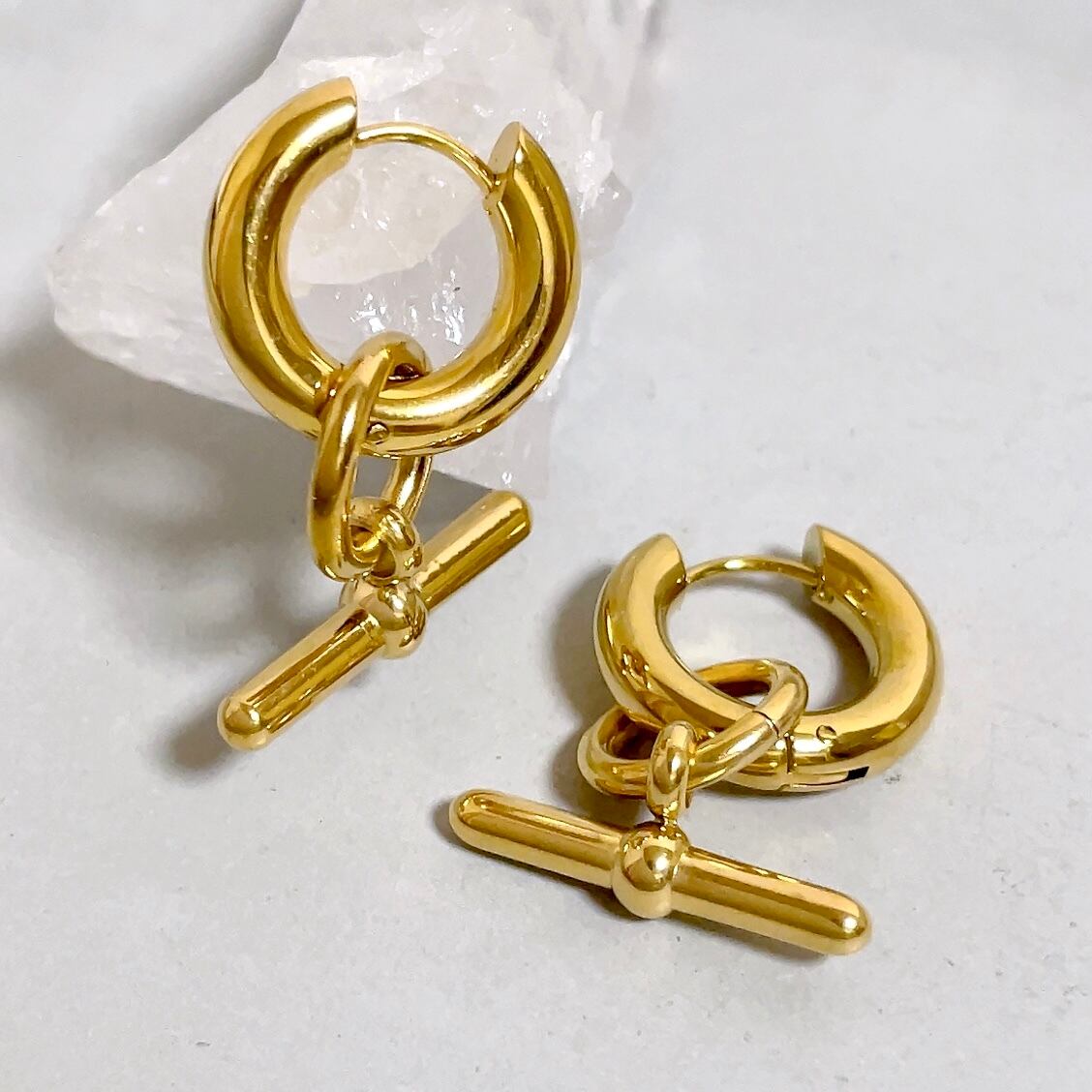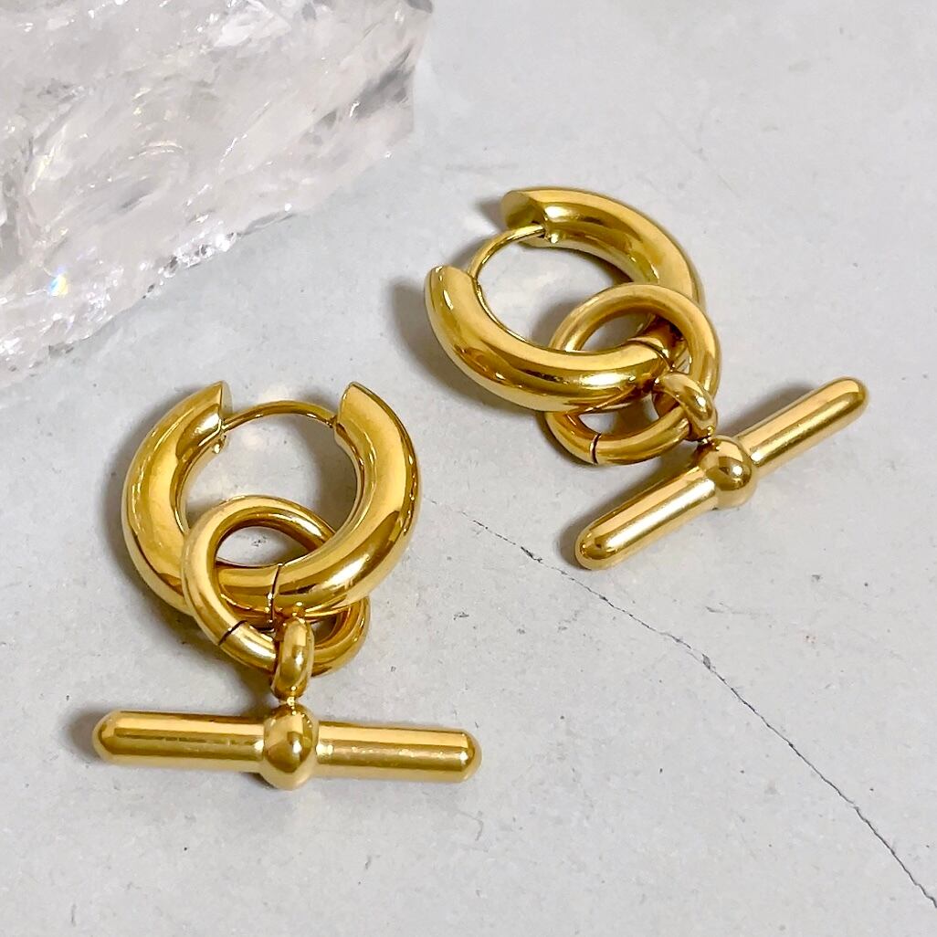 シンプルなフープピアスにもなる2way仕様。